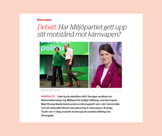 När Sverige nu snart har varit medlem i Nato i två år bjuder vi in till ett digitalt lunchseminarium på tema Nato och kärnvapen. Gabriella I [...]