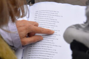 Regnet öser ner på morgonen när uppläsningen från de tunga, tjocka pärmar som utgör listan på barnens namn påbörjas. På en svart skärm rullar namn efter namn på barn som dödats. En skolklass med små barn går förbi, och påminner om barnen som skulle varit vid liv. På listan fanns 18 726 namn. På tio timmar hann vi läsa 5 148 namn, alltså inte ens en tredjedel. Det är talande för hur smärtsamt många barn som fråntagits rätten till liv.